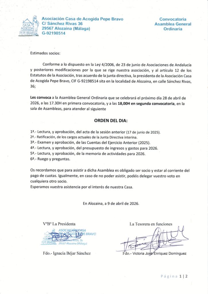 Si desea delegar su derecho a voto en otra persona que asistirá a la asamblea, contáctenos en el teléfono: 640623497